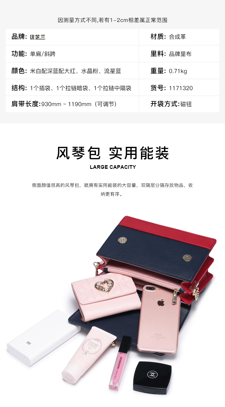 纽芝兰包包女士2018新款潮百搭韩版时尚单肩斜挎包少女小挎包链条