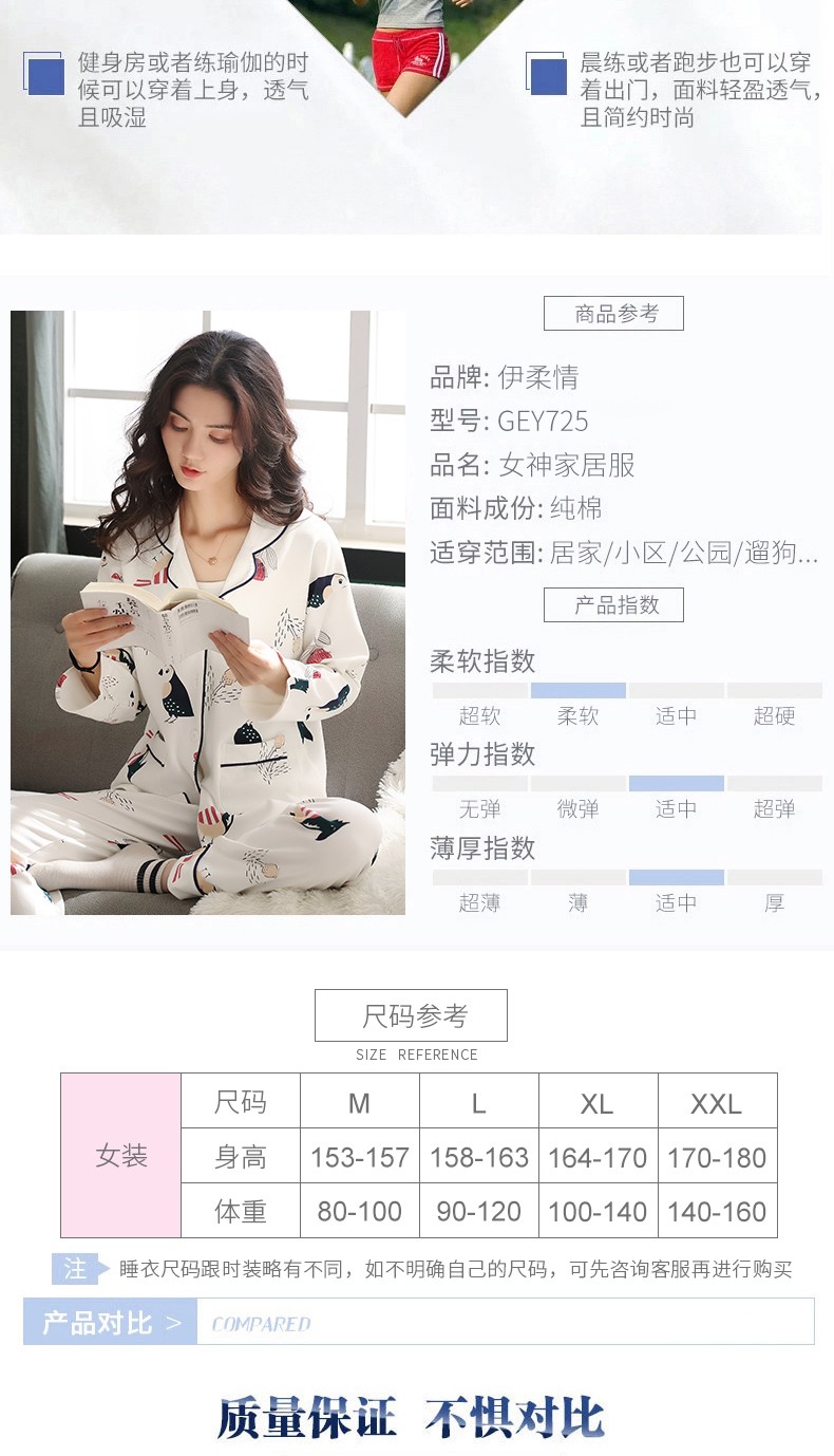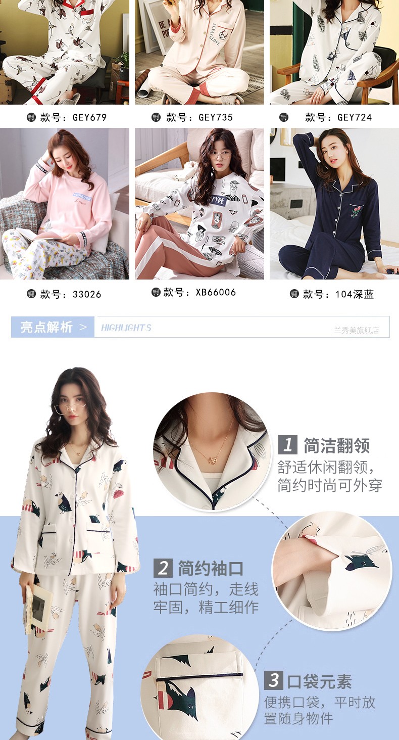 睡衣女长袖春秋季纯棉韩版女士大码薄款春夏季全棉家居服两件套装